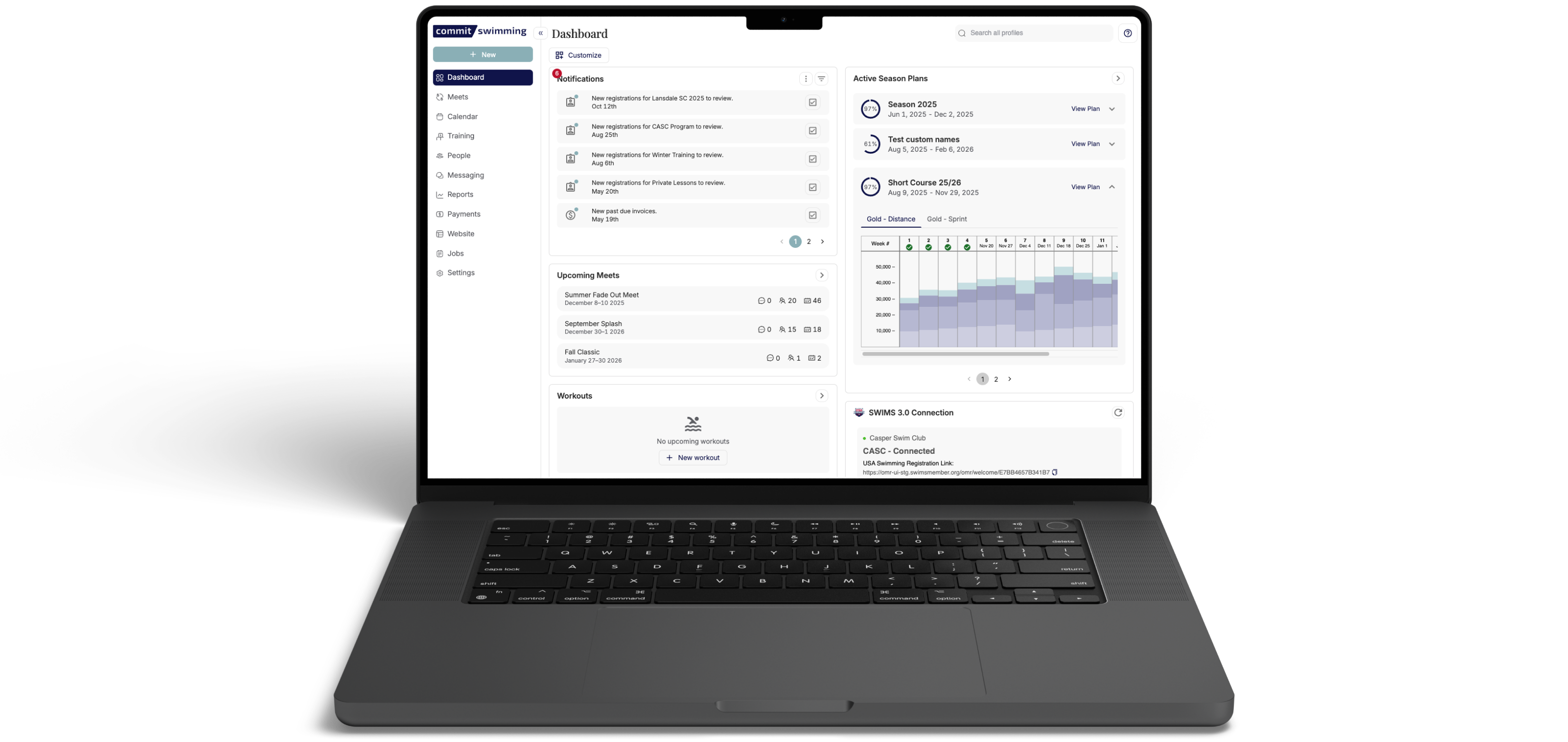 Commit's interactive reports are the best in swimming. Analyze your team's training data and performance at a level you've never done before. And of course export financial reports that match exactly to your bank account payouts.