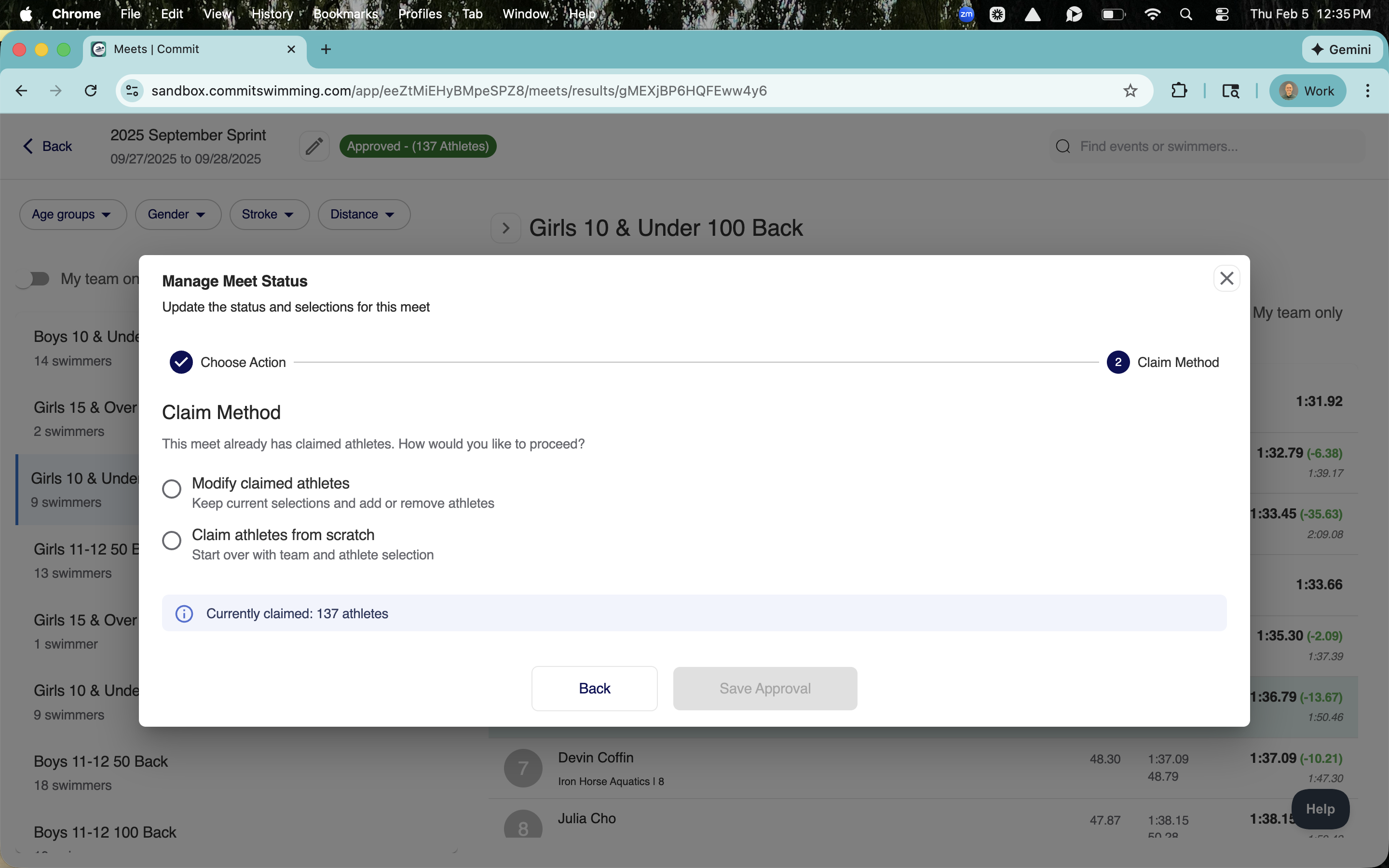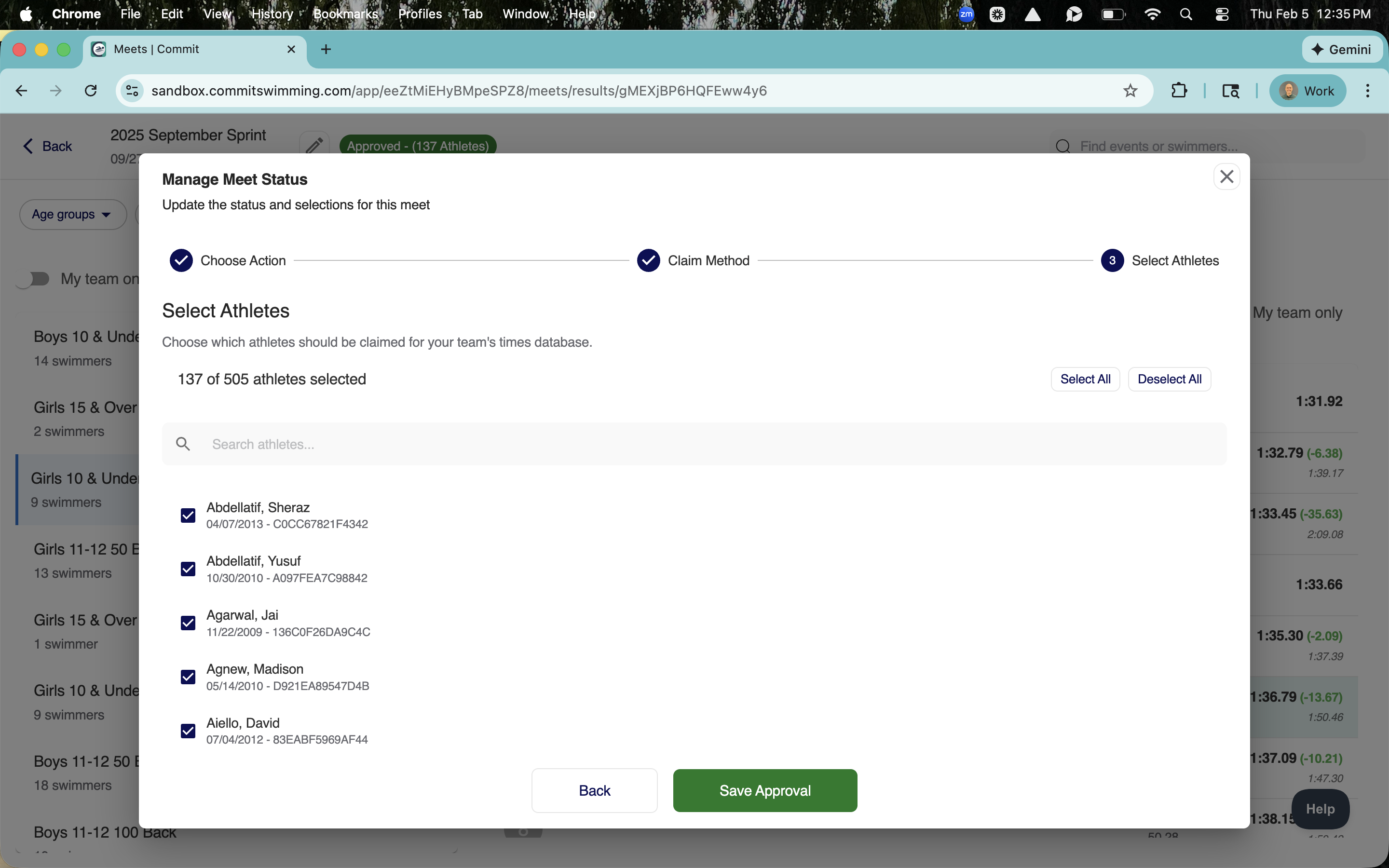 You can now edit the approval process for your swimmers. This allows you to modify any claimed athletes within a meet, ensuring your entries are always accurate.